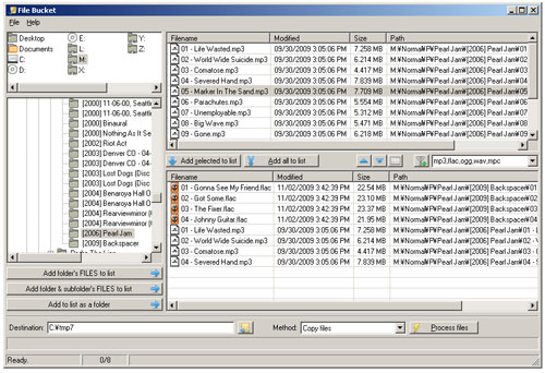 Điều này có nghĩa là nếu các tập tin MP3 của bạn được lưu trữ trong thư mục khác nhau, bạn có thể chọn tất cả các thư mục này từ giao diện ứng dụng, thêm nó vào danh sách và sau đó sao chép hoặc di chuyển các tập tin trong toàn bộ danh sách một vị trí khác (ví dụ thư mục Music).